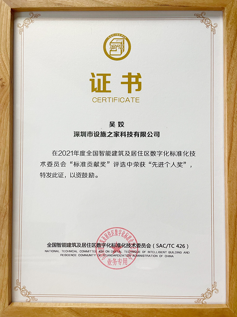 近日,全国智能建筑及居住区数字化标准化技术委员会(以下简称“全国智标委”)举办第三届第三次事情集会暨智慧都会立异生长岑岭论坛,表扬在标准体系建设、标准科研、国际标准化、标准实施及应用等方面作出突出孝敬的行业专家,设施之家CEO吴姣女士荣获2021年度“标准孝敬奖”先进个人奖。