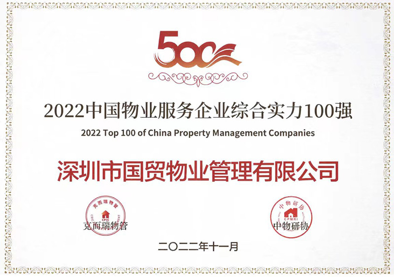 近日,克而瑞物管和中物研协宣布2022中国物业效劳企业综合实力研究结果,揭晓2022中国物业效劳企业综合实力500强、2022中国国有物业效劳企业综合实力50强以及各细分业态、特色领先物业效劳企业及标杆项目,国贸物管公司凭借领先的效劳理念和优质的效劳品质,荣获八项荣誉。