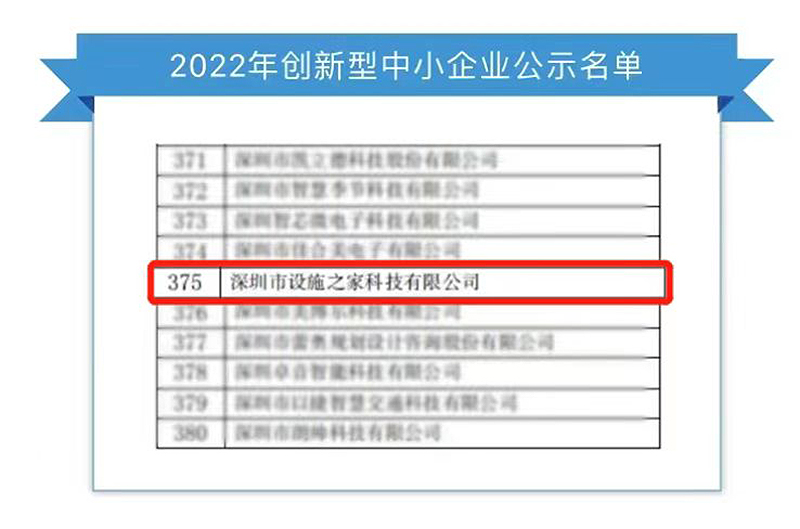近日,深圳市福田区工业和信息化局宣布辖区“2022年立异型中小企业”名单,经企业自评、佐证质料审核、抽查审计等程序,设施之家荣获“立异型中小企业”认定。