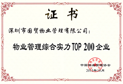 国贸物业治理公司荣获“全国物业治理综合实力200强企业”称呼