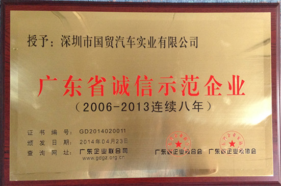 近日,在广东省企业联合会、广东省企业家协会联合主办的“广东省诚信示范企业”评选运动中,国贸汽车公司荣获“广东省诚信示范企业”称呼。这是该公司自2006年以来连续八年获此殊荣。