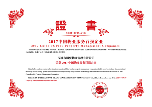 国贸物管公司荣获“中国物业效劳百强企业”称呼
