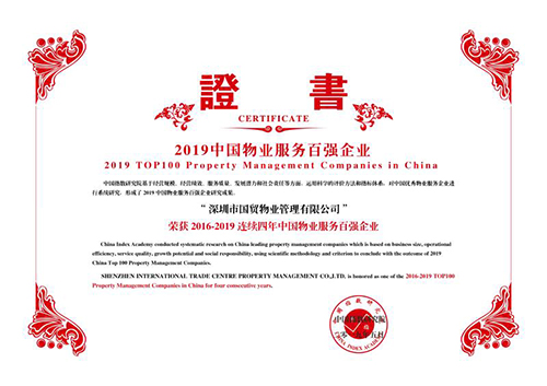 国贸物管公司荣获“2019中国物业效劳百强企业”第33名
