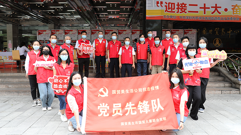 2022-07-08国贸大厦联合党支部举办无偿献血公益运动为庆祝中国共产党建立101周年,践行“我为群众办实事”实践运动,7月8日,国贸美生活公司国贸大厦联合党支部联合中共深圳市南湖街道嘉北社区委员会、中共中国银行深圳市分行罗湖统领支行委员会、中共中国农业银行深圳国贸支行委员会等,配合举办“迎接党的二十大、热血勇继续”暨第十一届“红色旗帜·红色行动”无偿献血公益运动。 -
