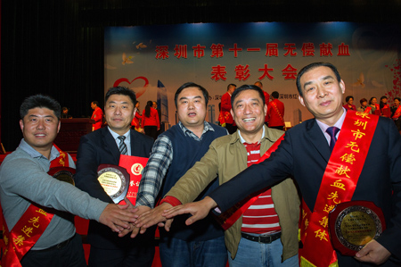3月27日,深圳市卫生和计划生育委员会、深圳市红十字会在市民中心会堂隆重召开全市第11届无偿献血表扬大会,集团公司下属国贸汽车公司、国贸物管公司国贸大厦治理处和福民新村治理处等3家单位被授予“深圳市无偿献血先进集体”称呼;江昊、杜锋、李德财和王诚等四名员工获得全国无偿献血贡献金奖;李德财和王诚还获得全国无偿献血志愿效劳奖。