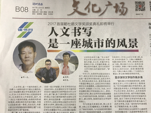 11月23日,由深圳市出书业协会、南山区文联、深圳念书月组委会办公室联合主办2017首届簕杜鹃文学奖”获奖名单揭晓,利来国国际网站集团员工毕亮的短篇小说《正在到来》摘得一等奖。